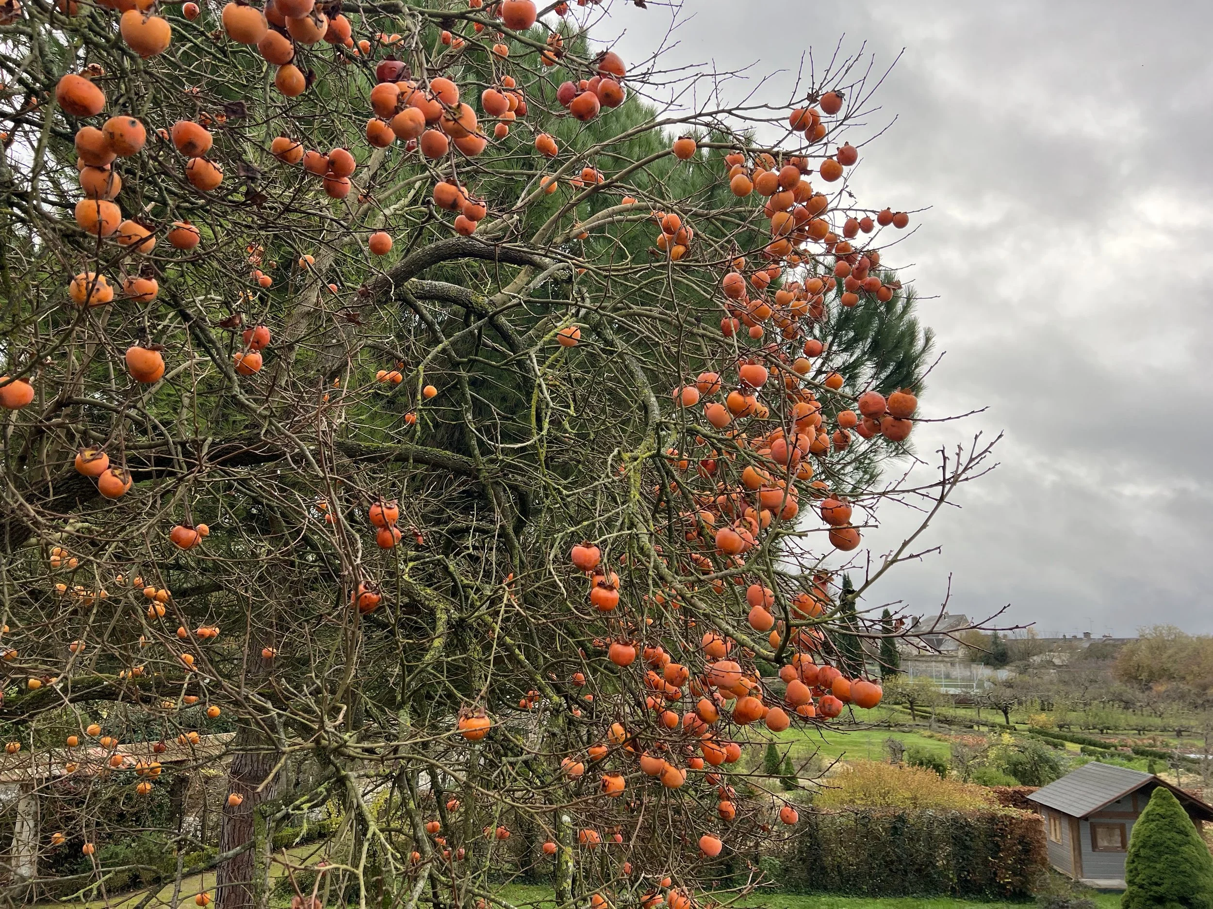 Quel est cet arbre surprenant, portant encore ses fruits ronds oranges en décembre, comme des boules de Noël? Il s’agit du plaqueminier dont le fruit, le plaquemine, est mieux connu sous le nom de kaki. Le nom botanique de cet arbre est effectivement Diospyros kaki. C’est un nom ronflant, car il signifie, ni plus ni moins que fruit des dieux (du gres dios, Zeus, dieu et pyros, le fruit, le grain).