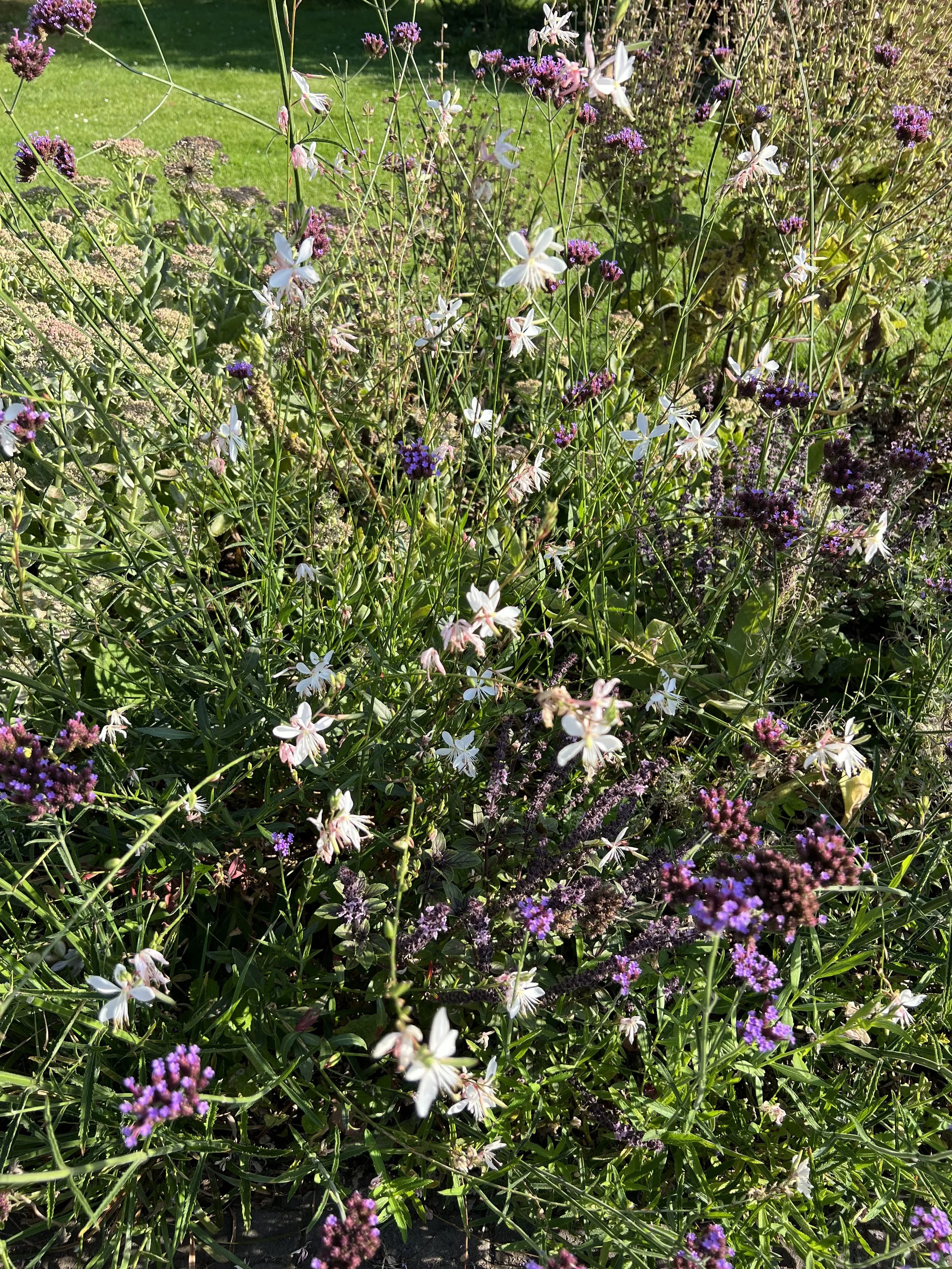 Les gauras trouvent aussi leur bonheur en climat méditerranéen, même dans les jardins sans arrosage. Ils lancent leurs épis légers vers le ciel, comme des cannes à pêche, jusqu’à 1,20m de hauteur. Les fleurs terminales voltigent dans la brise comme autant de papillons. On peut envisager de tailler un peu au milieu d’été pour obtenir des plantes plus compactes et une floraison tardive plus soutenue.