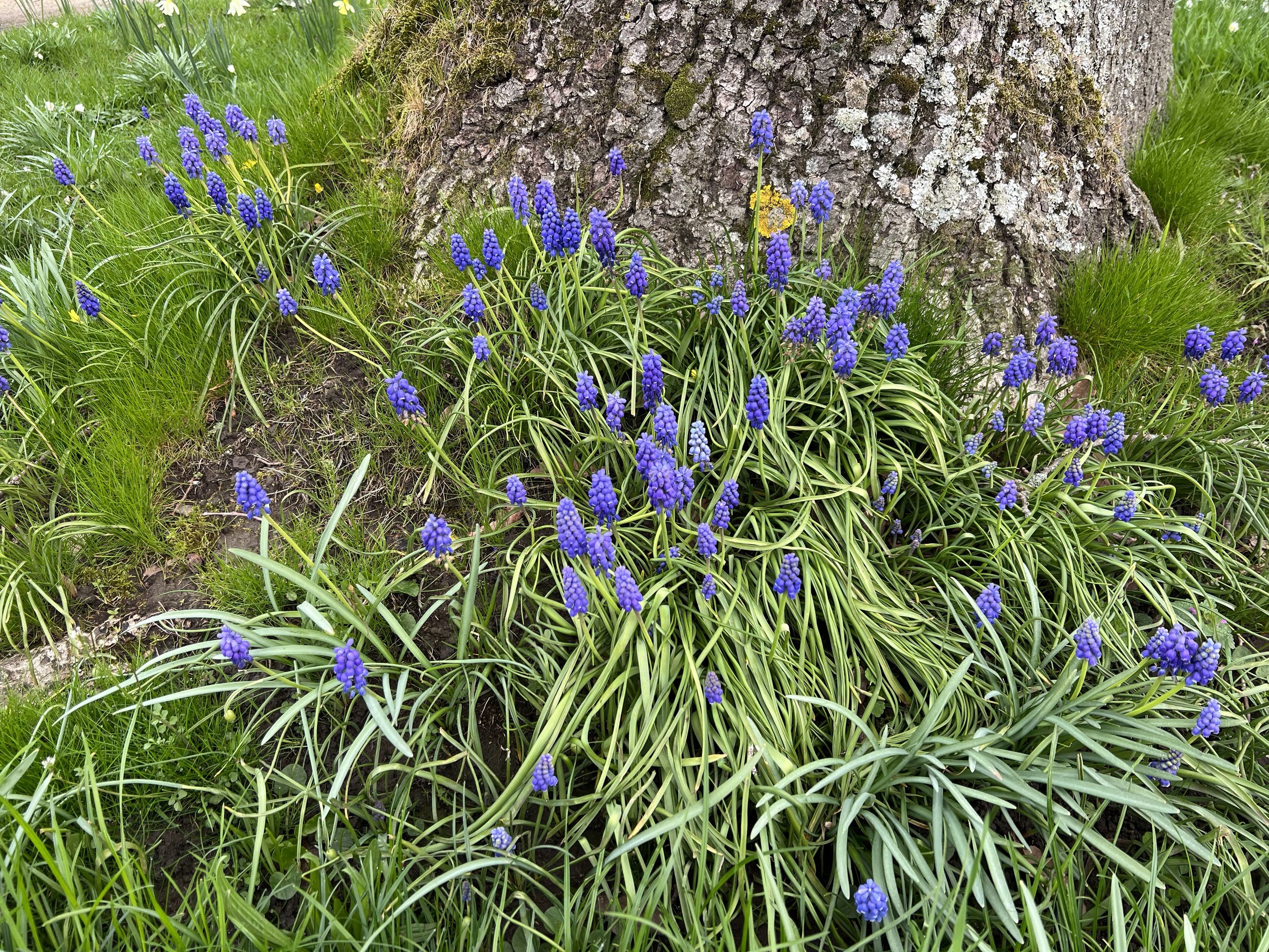 Avec le printemps arrive la joie des bulbes. Un tout petit bulbe aux clochettes bleu pervenche est fidèle au rendez-vous chaque année: le charmant muscari.