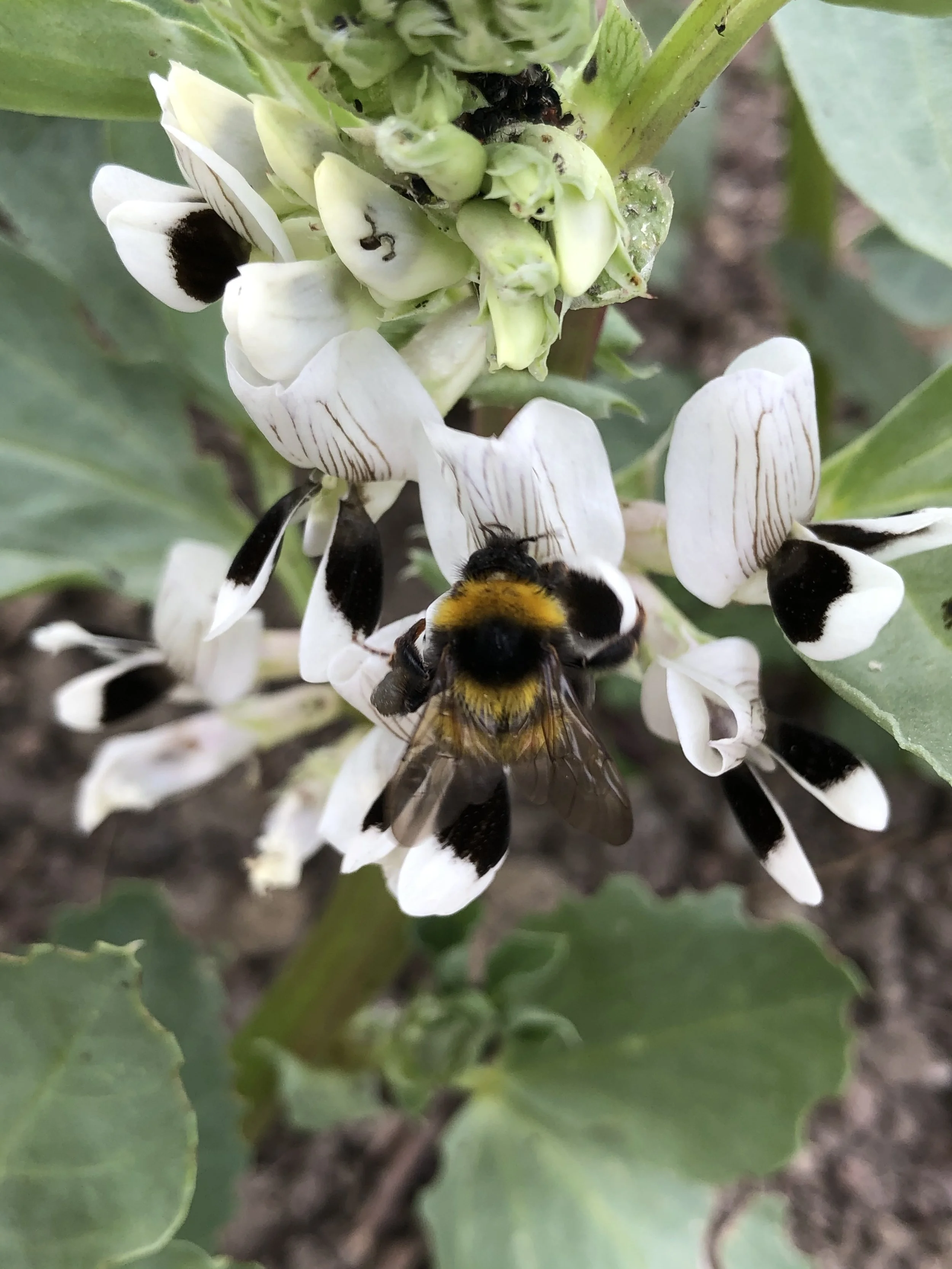 Avec sa rusticité, son vrombissement et ses poils qui se couvrent de pollen, le bourdon est un pollinisateur très efficace. Il a son importance pour les cultures économiques. On le voit ici sur les fleurs des fèves des marais. Dans les cultures sous serre, les agriculteurs ont principalement recours aux bourdons pour polliniser les tomates, les poivrons et les fraises.