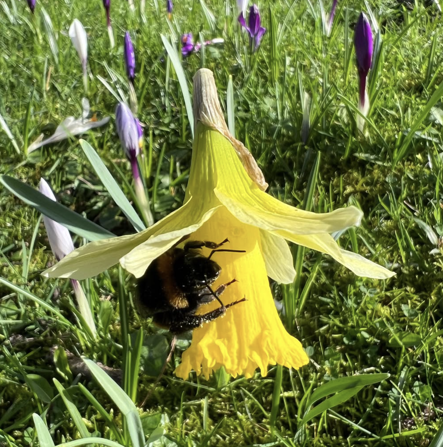 Les petits narcisses sauvages sont aussi très appréciés. Nos amis peuvent s’enfiler dans la corolle ou même piquer à travers avec leur langue pour atteindre le nectar.