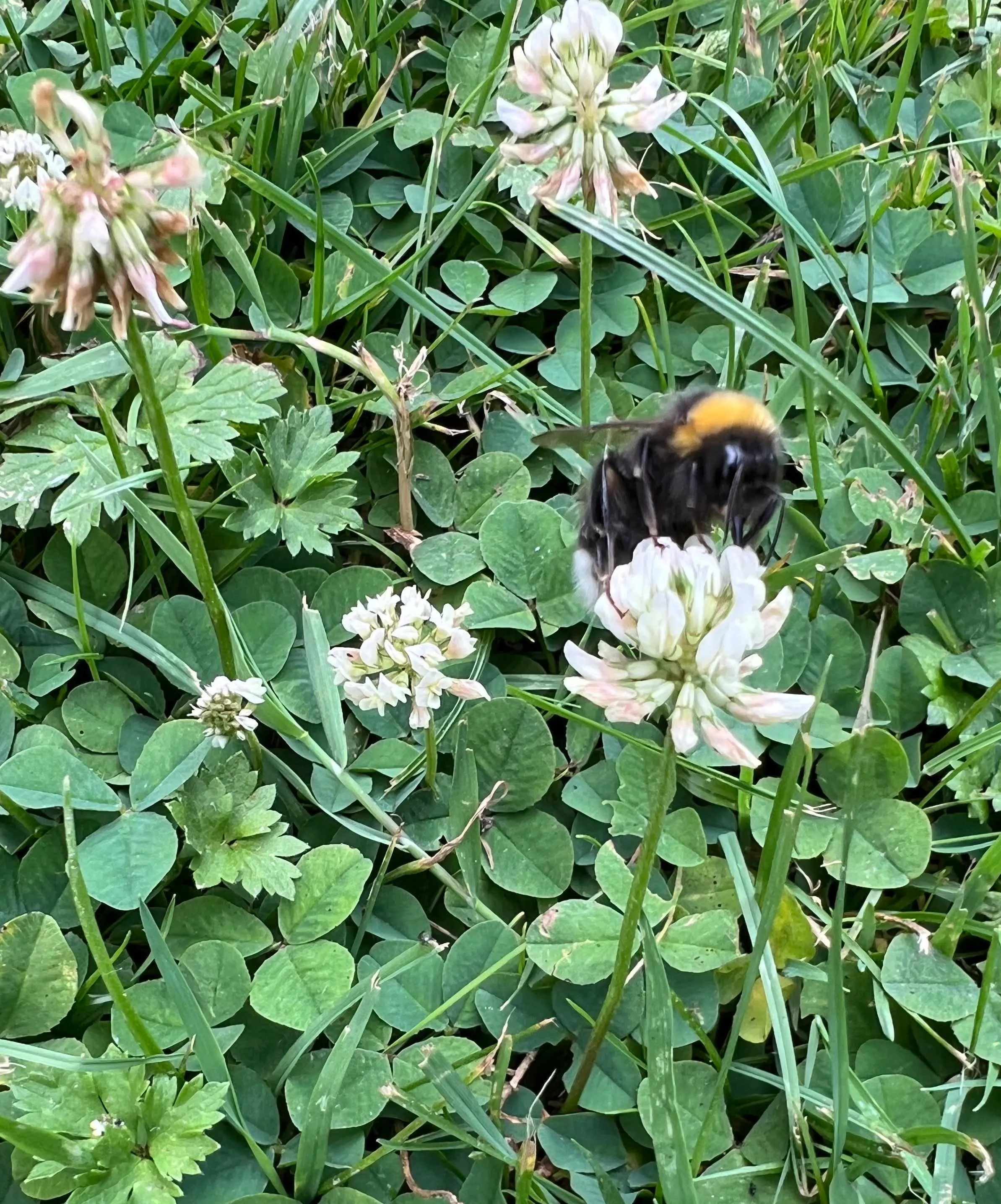 Voyons les bourdons comme de petites boules de poils biens sympathiques et - en principe - inoffensives. Seule la femelle est munie d’un dard, mais elle n’est pas agressive. Le seul risque est d’écraser un bourdon par mégarde, notamment en marchant pied nus dans la pelouse par exemple. Comme l’abeille, il adore le trèfle blanc!