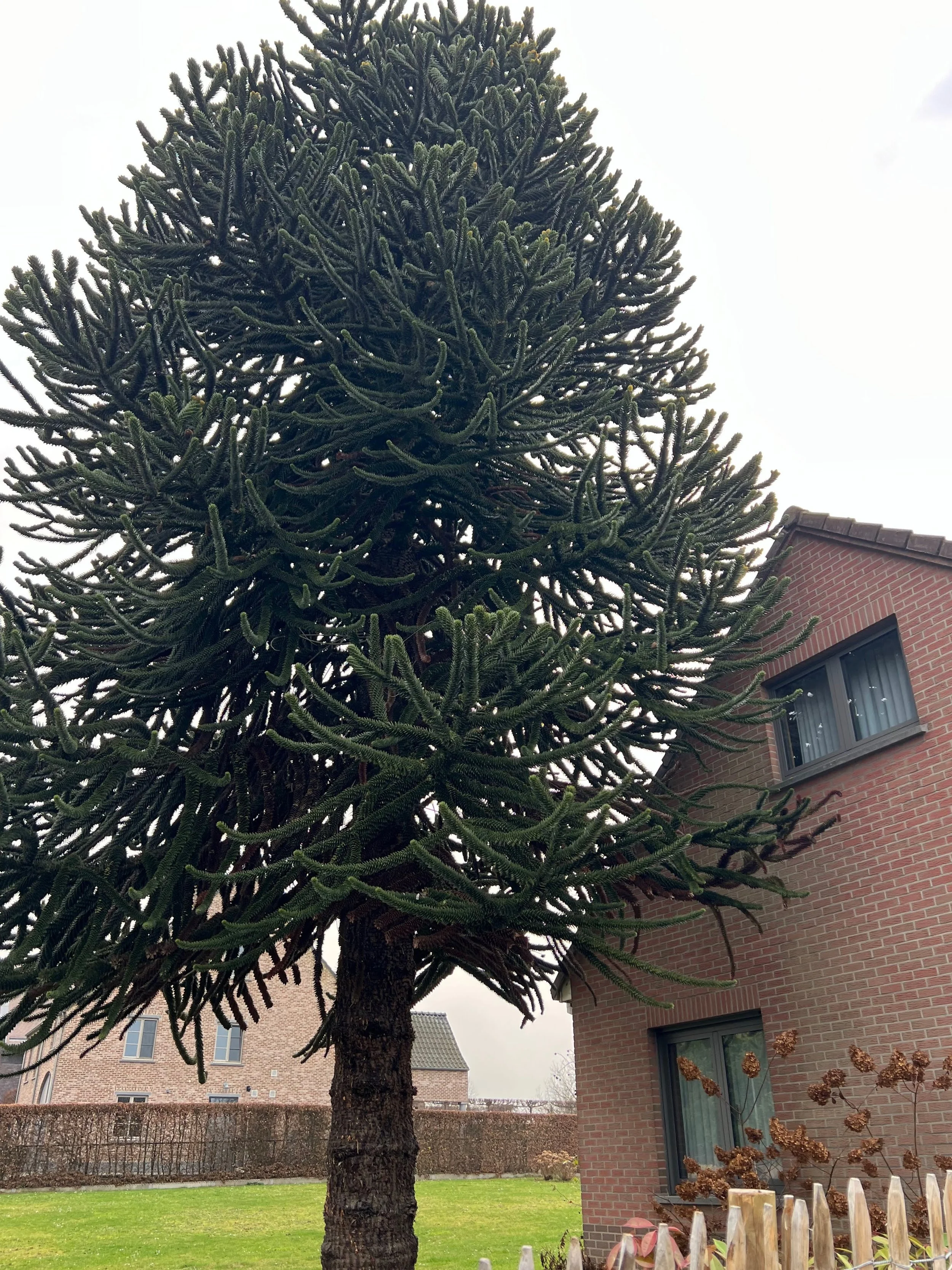 S’il est majestueux dans son environnement naturel, l’allure exotique de Araucaria araucana le rend incongru dans beaucoup de situations. Je m’étonne toujours de le voir planté devant des maisons suburbaines où il mange littéralement tout l’espace! Beaucoup ne réalisent pas que l’arbre devient immense…