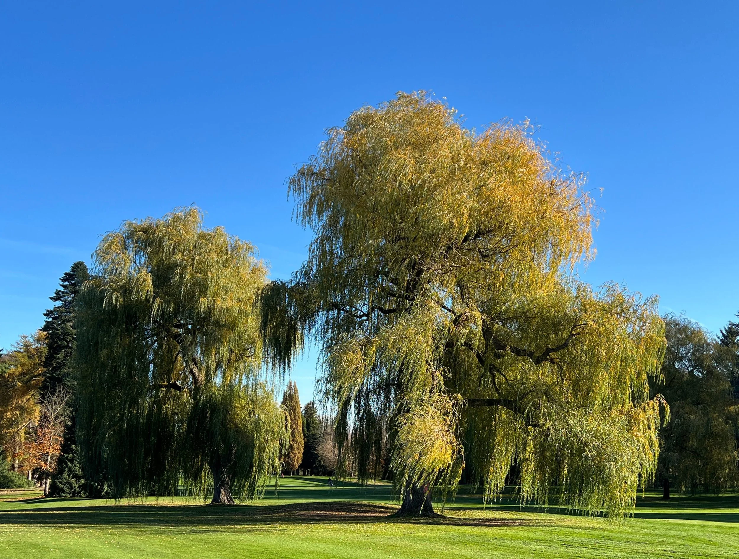 Actuellement, le saule pleureur le plus planté est un hybride horticole, Salix x sepulcralis ‘Chrysocoma’. Le nom du cultivar provient du grec et veut dire ‘à la chevelure dorée’, un nom très approprié car, à l’automne quand les feuilles colorent ou l’hiver quand les brindilles sont jaunes, on a bien l’impression de cheveux d’or agités par le vent.