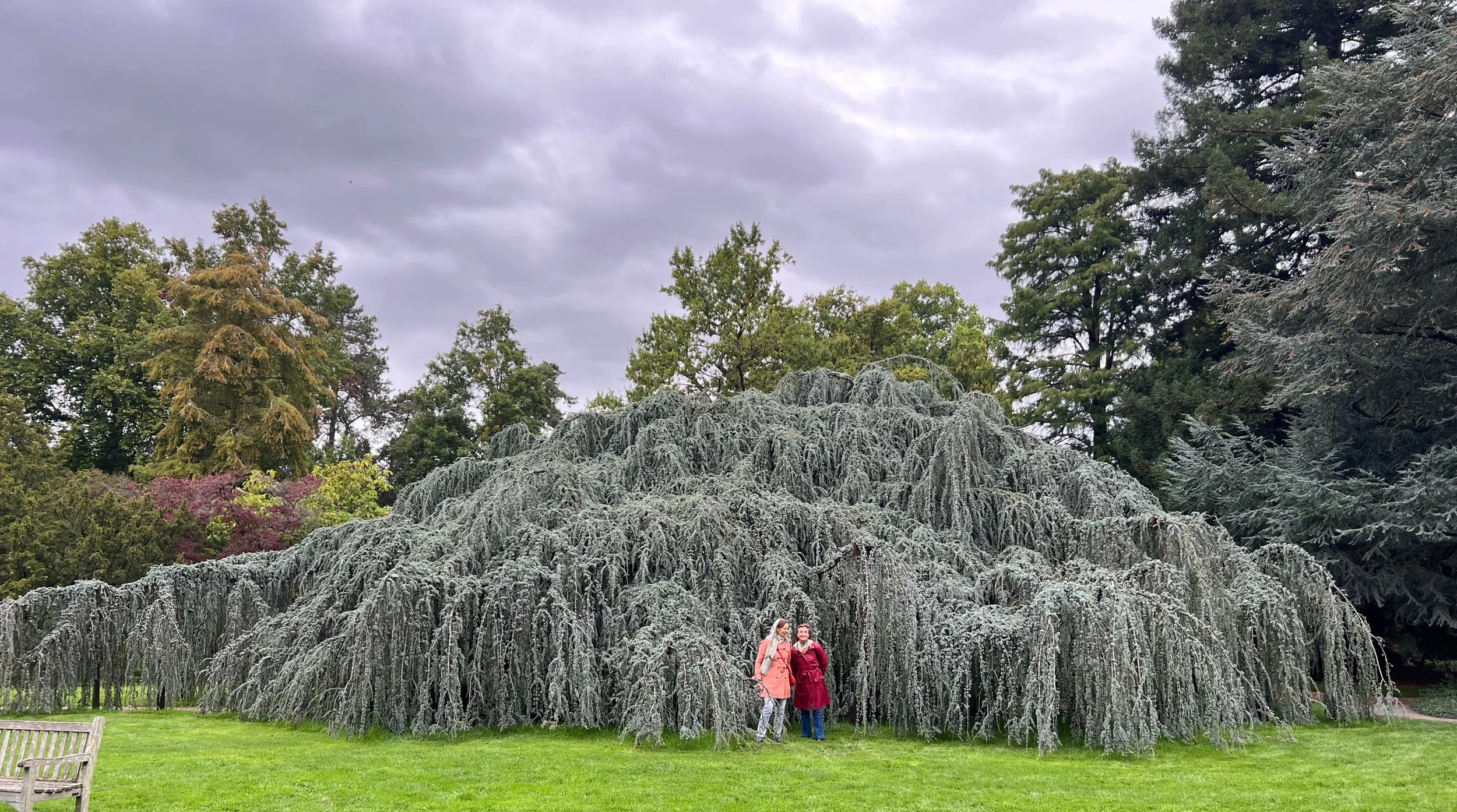 Les arbres pleureurs proviennent d’une mutation très rare qui fait pousser les branches vers le bas. Dans un certain nombre de cas, on peut remonter à un seul mutant. C’est le cas des cèdres bleus de l’Atlas pleureurs: ils remontent tous à cet exemplaire extraordinaire que j’ai eu la chance de voir dans l’Arboretum de la Vallée des Loups en France. La mutation fut découverte en 1873 dans une pépinière à Sceaux et le cèdre transplanté dans l’Arboretum au bord d’une pièce d’eau en 1895.